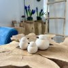Minimalistická a ručně vyrobená figurka ptáčka ve třech velikostech, s tmavým ocáskem a zobáčkem.