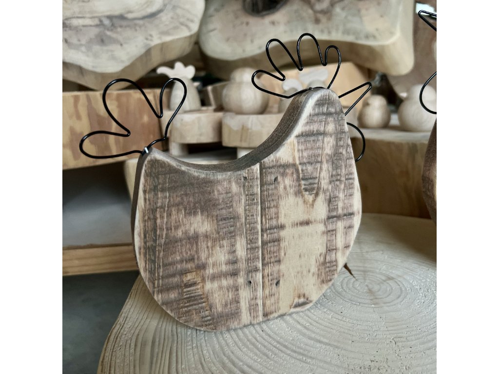 Pokud chcete výrazný přírodní prvek, který nepůsobí uměle ani sériově, tato dřevěná slepice nebo kohout ze starého dřeva je přesně ten detail, který prostor zútulní a zviditelní.
