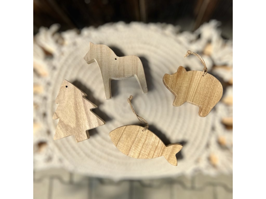 Dřevěné ozdoby – minimalistické, koník, ryba, stromeček, prasátko