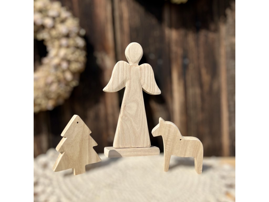 - 🎄 Stromeček – výška 11,7 cm, šířka 9,3 cm, síla dřeva 1,8–2 cm (stojící dekorace)