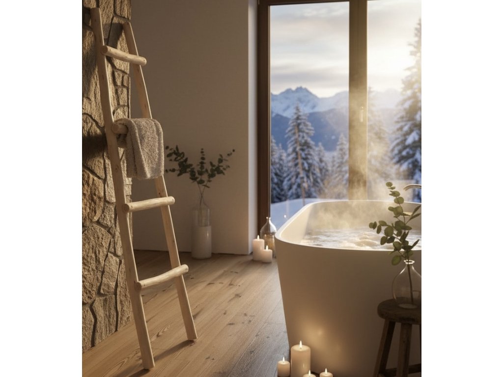 Odkládací žebřík na ručníky a deky – ideální pro ložnici, koupelnu nebo wellness.