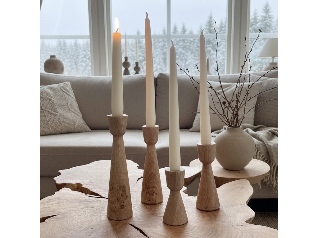 Naše ručně soustružené dřevěné svícny, inspirované skandinávským designem, jsou vytvořeny pro jedinečný dotek elegance ve vašem domově během adventního období či Vánoc, či po celý rok. Každý svícen je precizně zhotoven ze dřeva a nabízíme jej ve čtyřech různých velikostech. Umožňujeme vám vybírat mezi jednotlivými kusy nebo kompletní sadou, která přinese do vašeho prostoru neopakovatelný šarm.