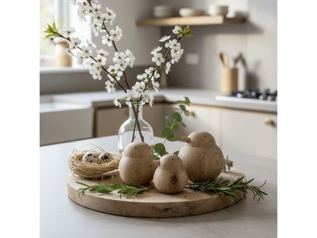 Naše luxusní autorská kolekce dřevěných ptáčků vás zajeté očaruje. Každý ptáček má tělo vyrobené z přírodního dubového dřeva a zobáček s ocáskem z bukového dřeva, což dodává celému kousku originální vzhled.