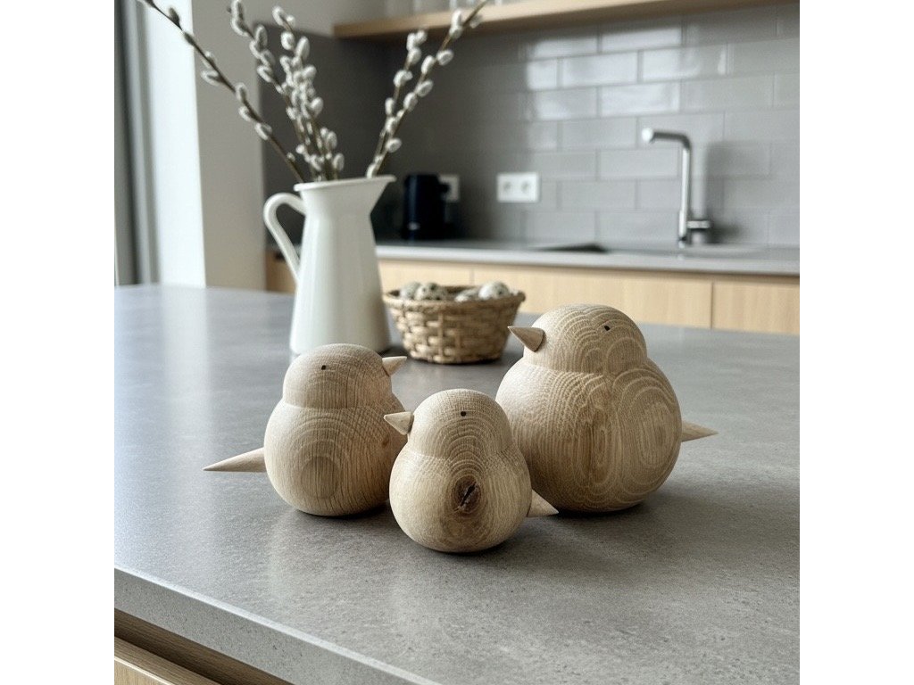 V naší rozšířené kolekci najdete jednoduché a přírodní dřevěné ptáčky, ručně vyráběné a dostupné ve třech luxusních velikostech: Mimino, Maminka a Tatínek, představující malý, velký a gigantický rozměr. Každá figurka zdobí interiér svou elegancí a jednoduchostí, vytvořená s láskou z prvotřídního dubového dřeva.