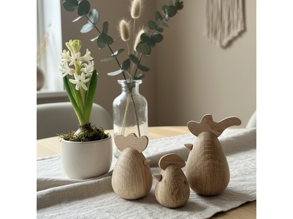 Figurky si můžete zakoupit buď samostatně, nebo jako kompletní sadu (kuřátko, slepička a kohoutek). Díky jejich harmonickému designu vypadají skvěle jak samostatně, tak i ve skupině.