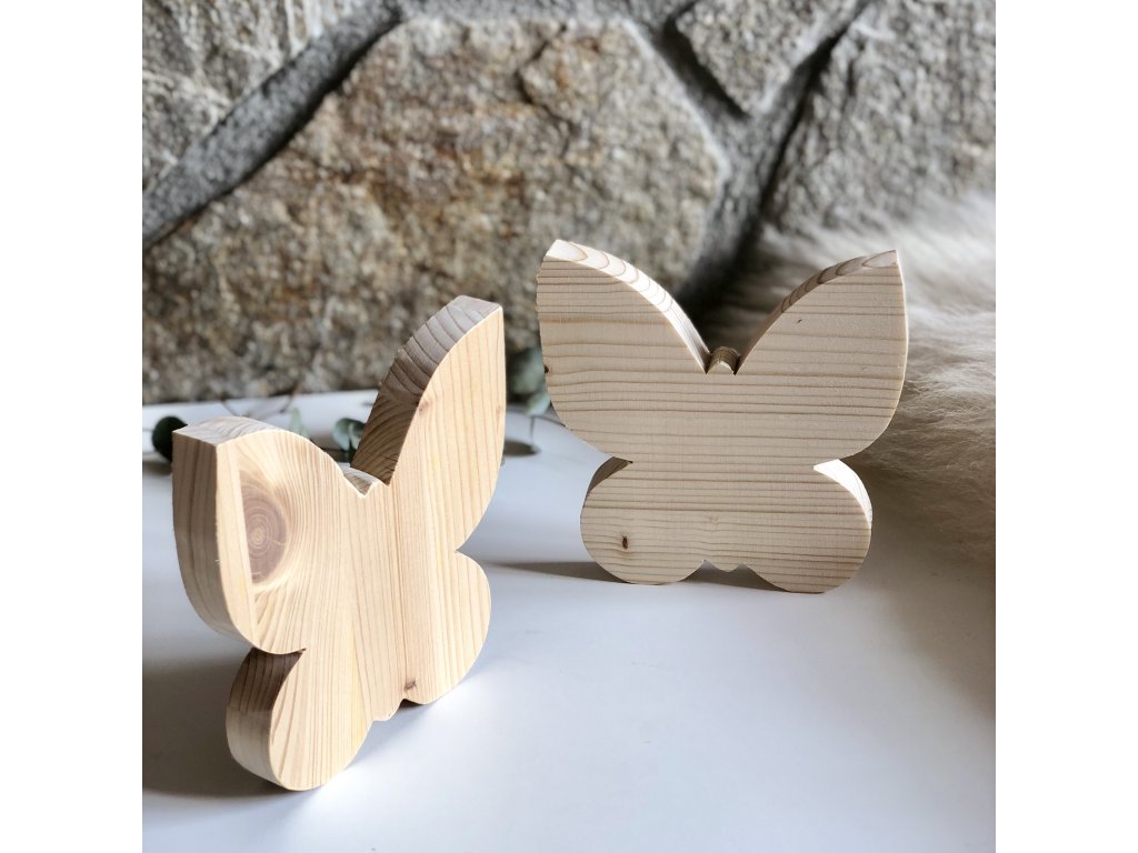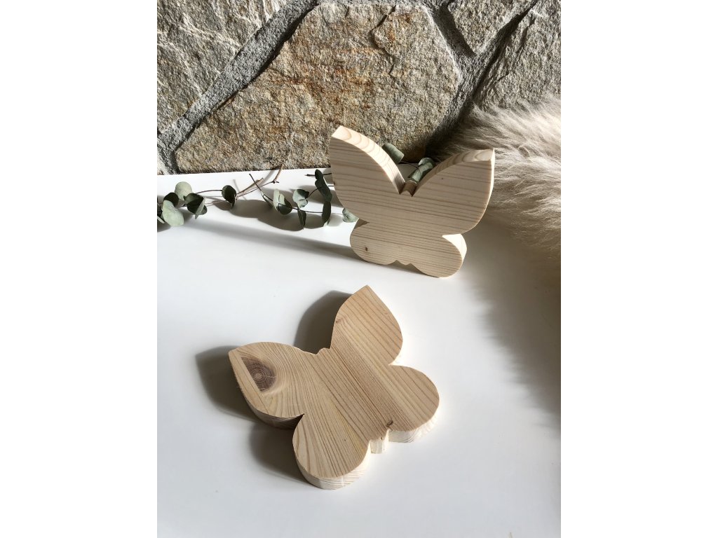Lehký, ručně vyřezávaný motýlek z jemného smrkového/borovicového dřeva zazáří každý interiér. Nejde jen o sezónní ozdobu - tento stylový motýlek dodá vášnivý nádech přírody a eleganci každý den.