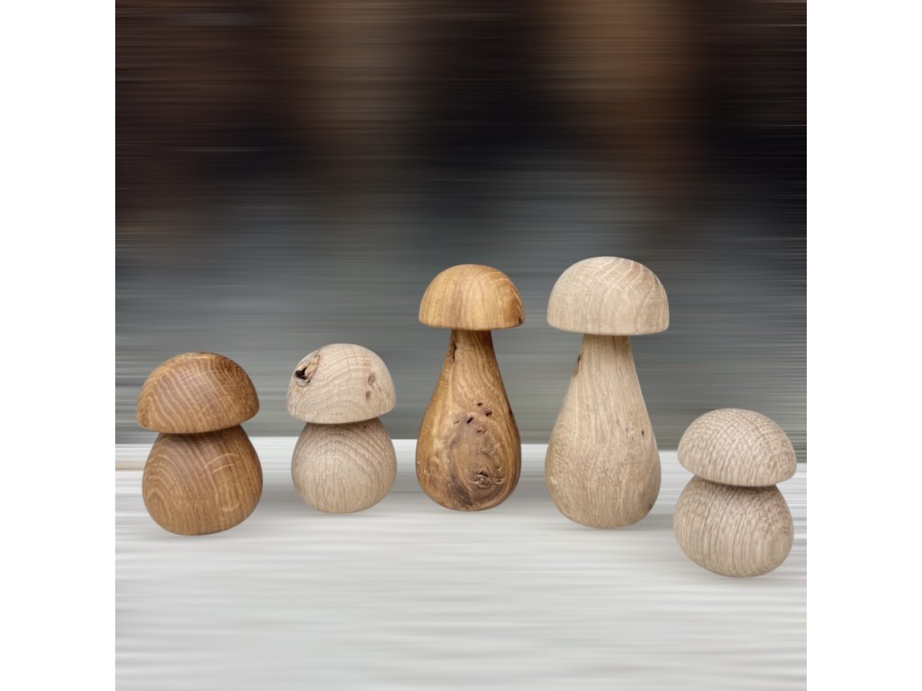 Naše soustružené dřevěné houbičky jsou ručně vyráběné z kvalitního dubového dřeva nebo z mixu dalších dřevin (javor, jasan, buk, olše aj.). Každý kus je originál – liší se kresbou, barvou i strukturou, a do vašich aranžmá přinese jedinečný přírodní prvek. Jsou ideální pro podzimní dekorace, rustikální aranžmá, floristické projekty i jako stylový dárek.