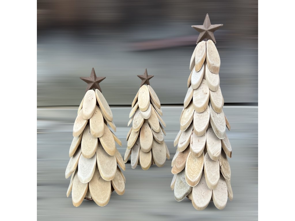 Stromečky z dřevěných lupínků s kovovou hvězdou