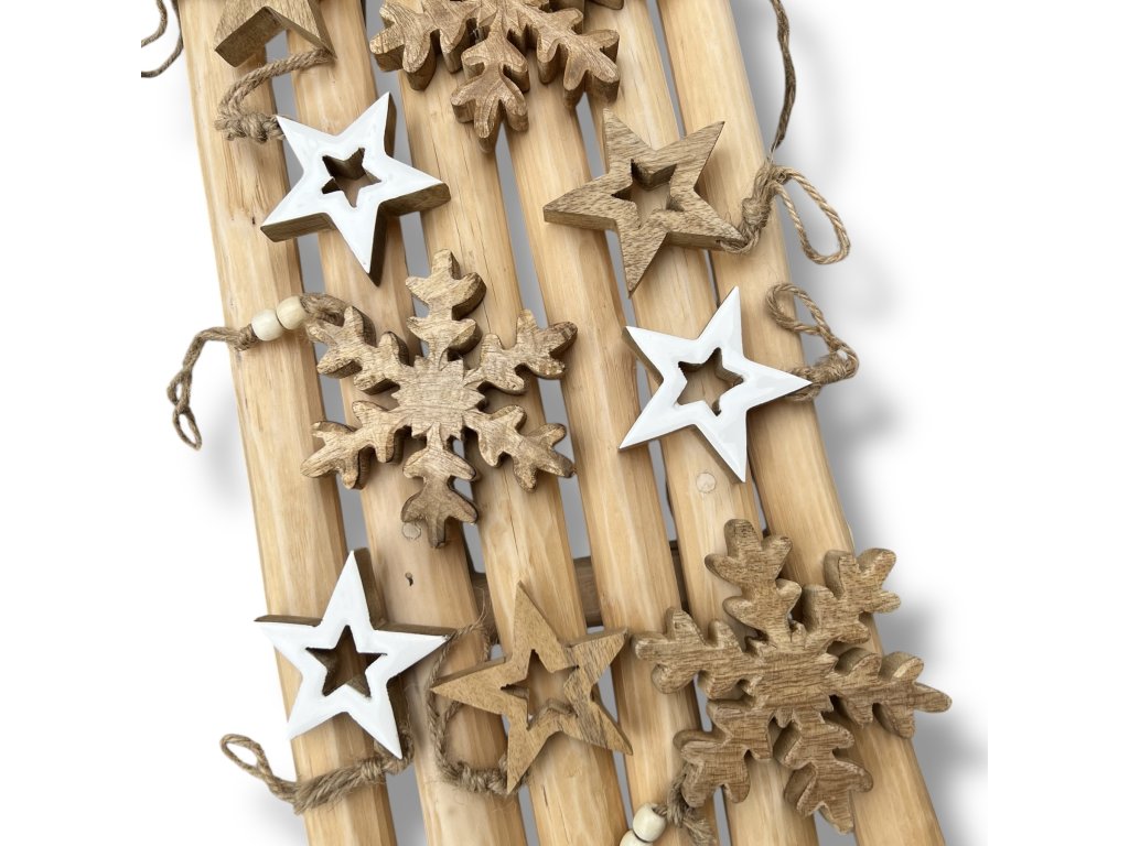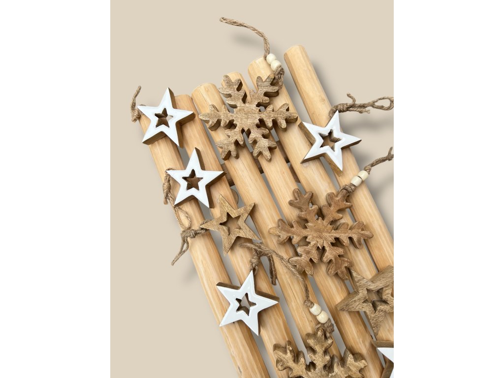 Každý kousek je ručně opracovaný, s důrazem na detail, tvar i kresbu dřeva. Díky ruční práci působí každá vločka i hvězdička naprosto jedinečně – žádná není stejná.